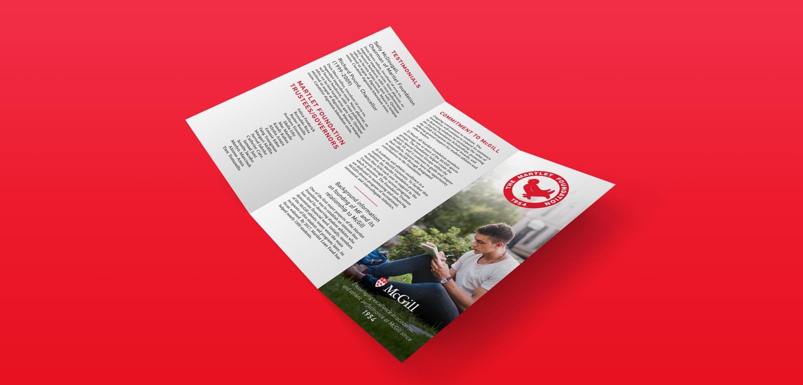 Pamphlet for the Martlet Foundation and its scholarships, also done during my stage.