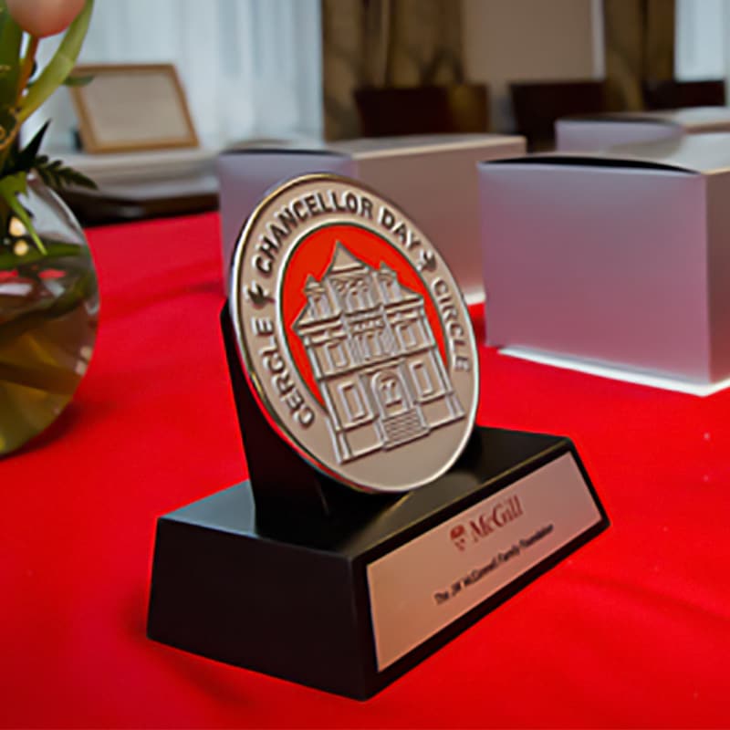 Pin logo and brochure design for McGill University Advancement department.